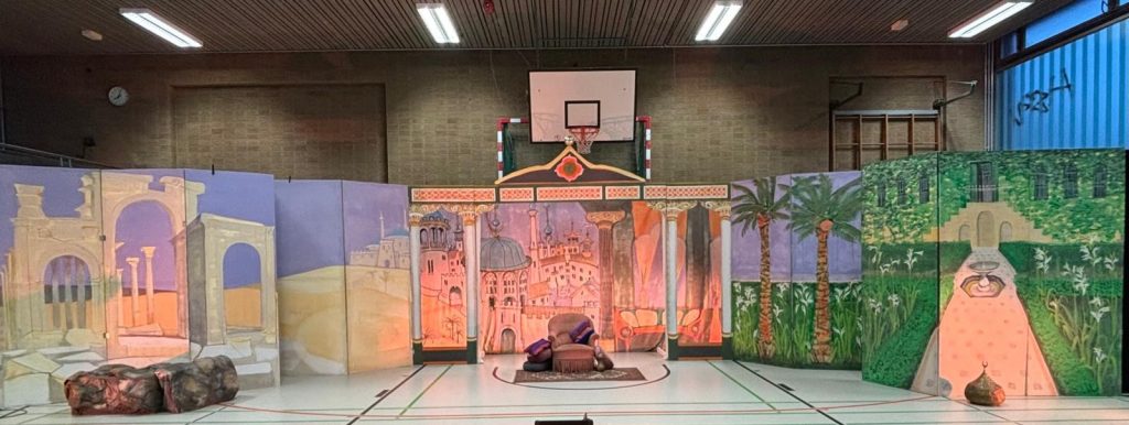 Am vergangenen Mittwoch wurde in unserer Turnhalle das Theaterstück „Kalif Storch“ als diesjähriges Weihnachtsmärchen aufgeführt. Die Turnhalle verwandelte sich dafür in eine kleine Bühne, auf der das Ensemble die Geschichte lebendig und humorvoll präsentierte. Zunächst kam der erste und dritte Jahrgang in den Genuss der Vorstellung. Gespannt verfolgten sie, wie der Kalif und sein Wesir…
